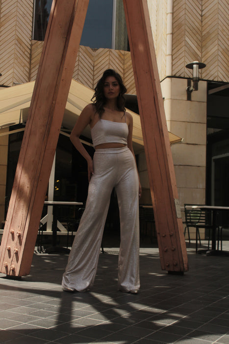 Wide-leg pants with stretchy waist , Spaghetti-Strap Crop Top