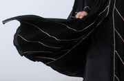 This abaya boasts a touch of opulence with an elegant touch of gold detail running down the front and delicately encircling the sleeves. It's a subtle yet striking detail that elevates the entire ensemble.