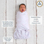 For over two decades, HALO has been a trusted and beloved choice among American parents. Now, it has finally arrived in Europe. With HALO's expertise in ensuring safe sleep for babies, it's no surprise that they are the top pick of over 1,700 hospitals in the US. The HALO SleepSack Swaddle stands out as the only 3-way swaddle that adjusts to fit your baby's unique sleep style. Whether your little one prefers to be swaddled with their arms in, hands-to-face, or with one or both arms out, this swaddle provides the perfect fit. Designed with adjustable fasteners, it cradles your baby like a soft blanket without any sleep-related hazards, allowing them to sleep peacefully and safely. The distinguished "Back is Best" embroidery serves as a gentle reminder to position your baby in the recommended sleep position. This swaddle also features an inverted zip for easy nappy changes and a spacious sack design that has been recognized