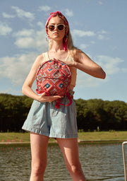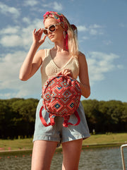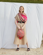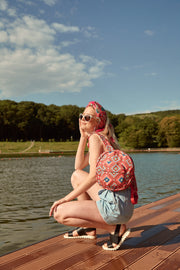 Backpack ROSSI is a designer`s pink fantasy. Stylish and bright for any outfit. Crafted from 100% cotton and can be worn for going to the beach, school, shopping, pilates, yoga, or whatever you do! Perfect gift idea.