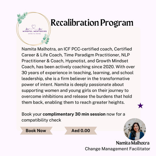 Mindful MentoringBook a 30 min free consultation session with Namita today! This Recalibration Program is specially designed for women who are ready to take charge ...