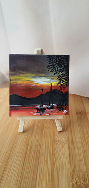 An eye soothing piece of nature, bring a piece of serenity and its vibe into your home/office. Keep it at your desk or hang it up on your wall. This one is definitely going to brighten up the place. It is created with acrylic colours on a cotton canvas. Note: The product in display could have slight change in colour due to camera quality or light source.