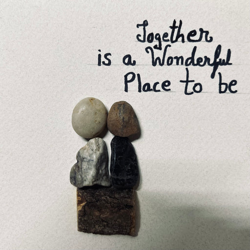 Woods & Pebbles14*14 cms cute couple pebbles artwork, framed on additional cost of 20aed