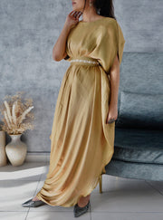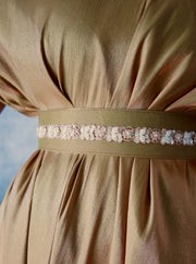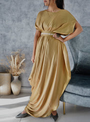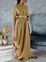 Olive shaded crowl dress in organza double fabric with handworked belt Product ID : 31984