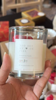 Surprise your loved one with our beautifully hand-poured Valentine candles. Each candle contains a heartfelt message, making it a unique and meaningful gift. Made with love and care, our candles are the perfect way to express your love this Valentine's Day.