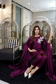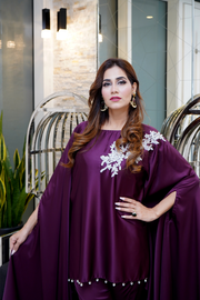 With its long, voluminous sleeves adorned with a pearl and silver embroidery patch work, This will be the epitome of sophistication for any occasion. Product Type: silk Care Instruction: Dry clean only.