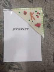 This hand-embroidered felt bookmark features a personalized touch with an alphabet of your choice. Each bookmark is unique and comes in a variety of colors (subject to availability). Enhance your reading experience with this one-of-a-kind, customizable accessory.