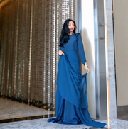 Experience luxury and sophistication with our Athena dress. This piece features a pleated long-sleeve dress, accented by a pleated chiffon overlay. The extra-long piece can be styled to fall effortlessly to the ankle or wrapped around the bust for a unique look. Elevate your style with this exclusive and versatile dress.
