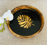 This stunning Gold Leaf Antique Tray is perfect for adding an elegant touch to any décor. Handcrafted from high quality wooden materials, this one-of-a-kind tray is intricately adorned with a gold leaf pattern and coated with shimmery resin. The perfect addition to any home.