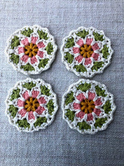 Use these pretty crocheted coasters to protect your table tops and enhance the room's décor. Perfect for placing hot or cold drinks on, these can be ordered in other colours as well.
