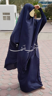 Navy Blue 3 Piece Jilbab Elastic Sleeves