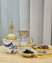 Box includes : A hand painted Bakhoor holder with a coal, single use bakhoor and a tong. In addition to it, a mini packet of dates