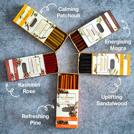 Raj UphaarGet the complete experience of Calming Patchouli, Uplifting Sandalwood, Energising Mogra and Refreshing Pine by purchasing a set of 5 Fragrance Inc...