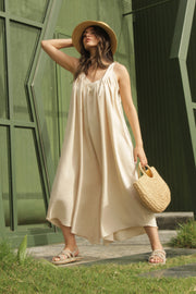 Flowy Wide-leg Jumpsuit ,Strappy V-neck, Adjustable Straps
