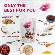 Made with ingredients such as dates, walnut, almonds, cocoa solids, coconut powder, and rock salt, our bar bites are perfect for growing kids and adults. The heavenly taste of brownies with a glorious nutty texture makes it a perfect treat for everyone.