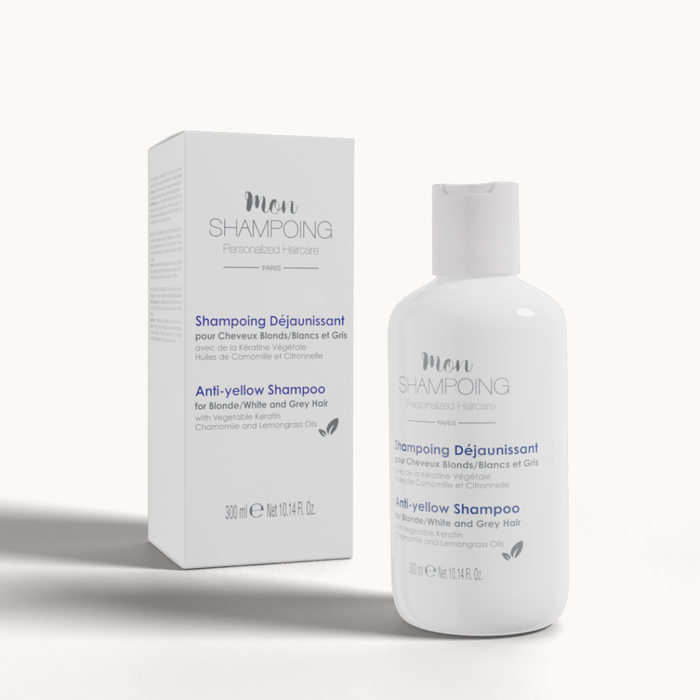 This natural Anti-yellow Shampoo without SLS, Paraben, Silicone is specially designed for blond, white and grey hair. Thanks to its violet anti-yellowing pigment, it neutralizes the undesirable yellow effects.
