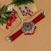 Maroon Color Black Silver Brass Premium American Diamond Choker Necklace Set (PCZN676MRN) - Maroon