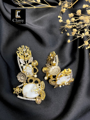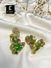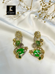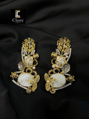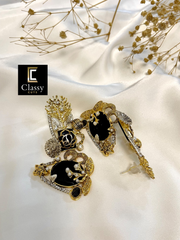 Meticulously handcrafted, these earrings seamlessly combine the warmth of metallic gold and silver tones with the natural beauty of a captivating gemstone.