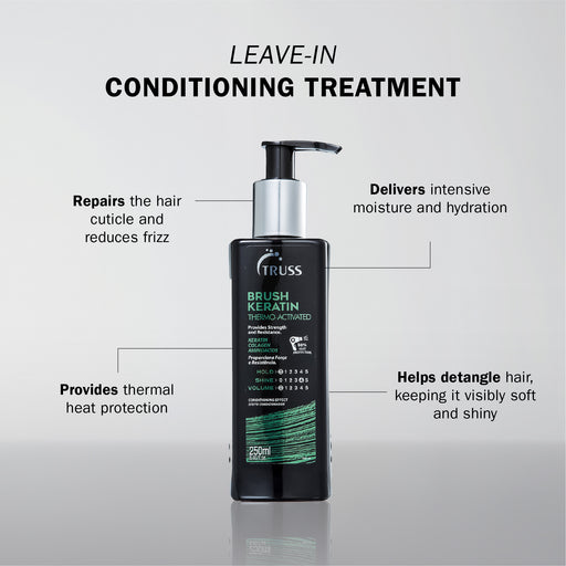 Truss ProfessionalLeave-in with UV protection. Detangling and thermal protector. Reduces frizz and provides shine and softness.