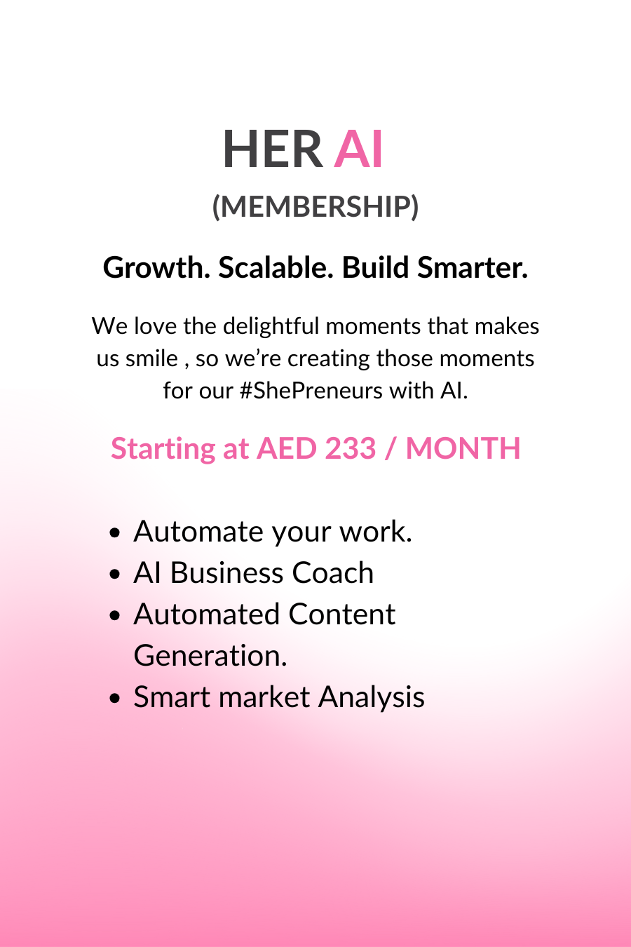 We love the delightful moments that make us smile unexpectedly,so we're creating those moments for our #shepreneurs with AI. Automate the boring stuff, so you can focus on what you love.