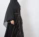 This abaya boasts a touch of opulence with an elegant touch of gold detail running down the front and delicately encircling the sleeves. It's a subtle yet striking detail that elevates the entire ensemble.
