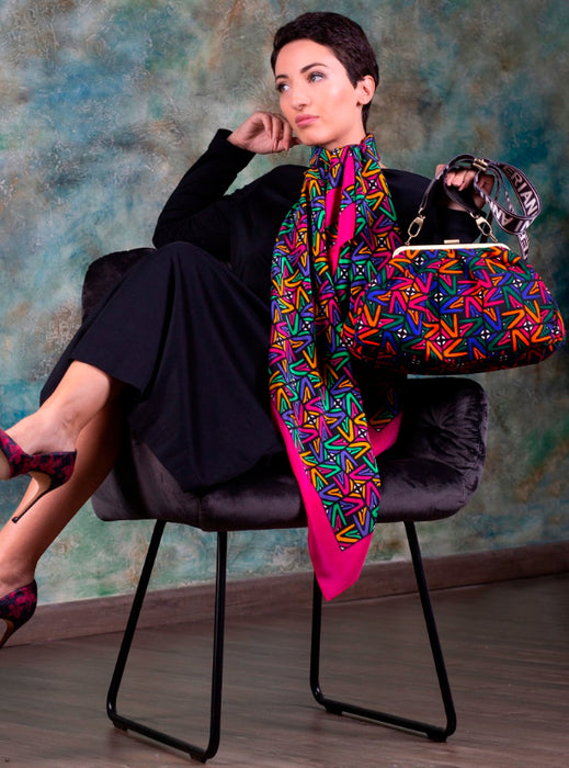 Designer note : Signature square silk scarf WB2 by Anni Teriani. 100 % silk. Size: Width 127 cm x Length127 cm - Do not bleach - Hand wash up to 30C/86F