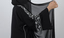 The beauty of this abaya lies in its intricate floral embroidery that gracefully adorns the sleeves,