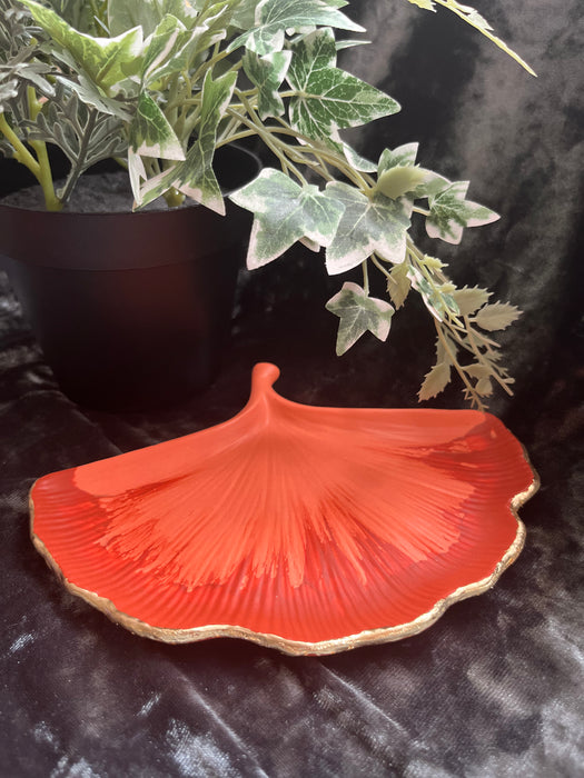 Solid-colored trinket tray offers a stylish way to store jewelry or add a decorative touch to any space.