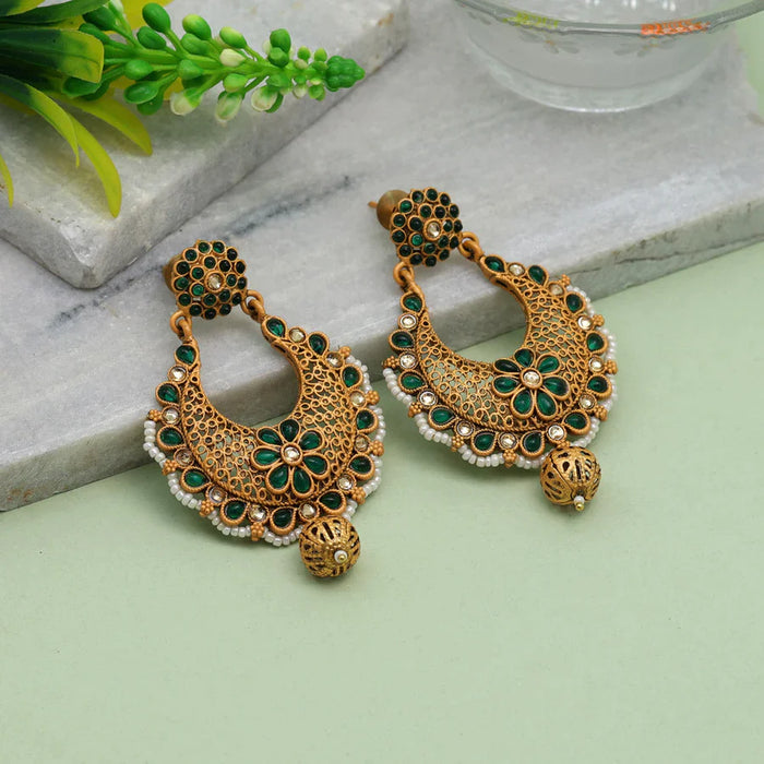 Green Color Matte Gold Earrings (MGE231GRN) - Green