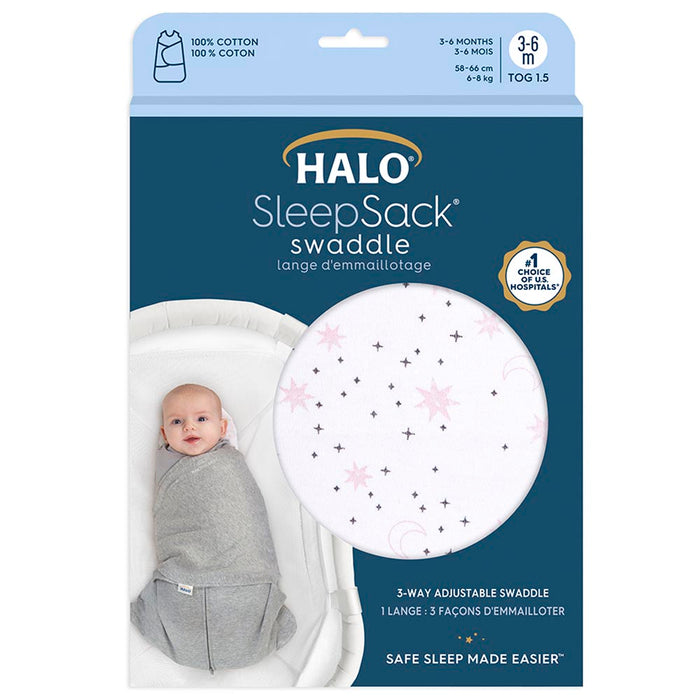 HALO SleepSack Swaddle 1.5 TOG 100% Cotton Midnight Moons Pink
