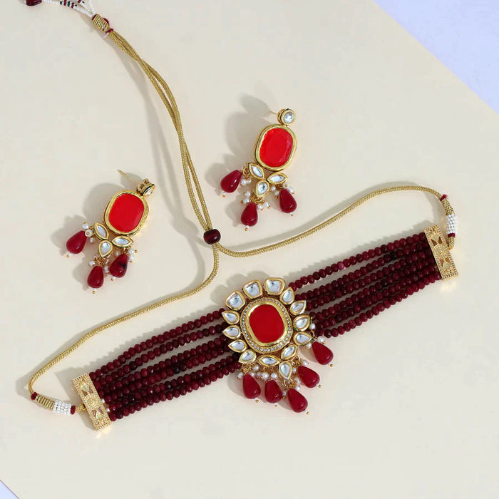 Maroon Color Choker American Diamond Necklaces Set (CZN473MRN) - Maroon