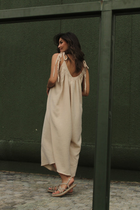 Flowy Wide-leg Jumpsuit ,Strappy V-neck, Adjustable Straps